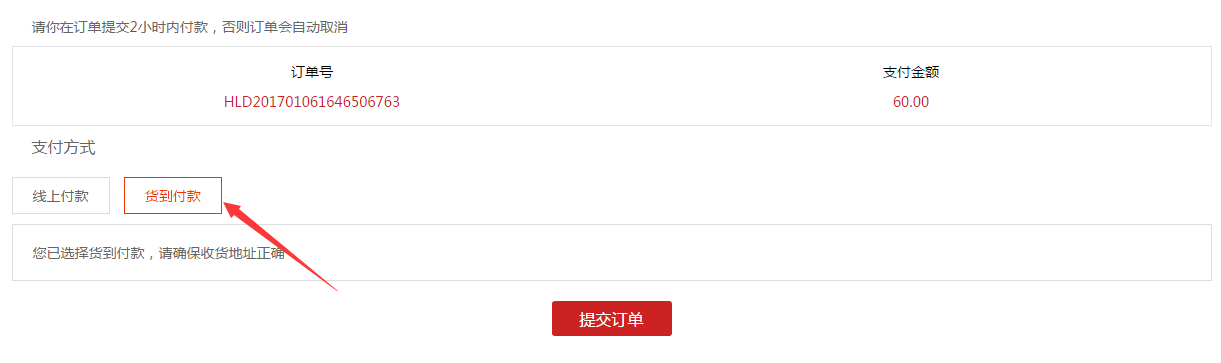 线下支付-货到付款支付流程? 1)确认订单-付款页面-选择货到付款-提交订单。